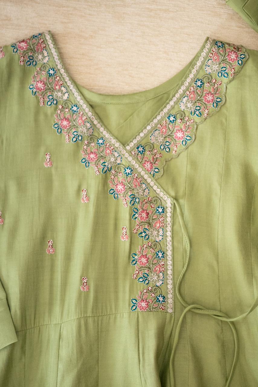 Experience effortless luxury with this premium Mul Chanderi suit, ideal for both festive and elegant everyday wear.